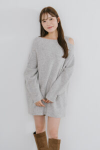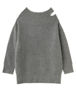 高級な獣毛混の糸を使用し、ふわふわと柔らかい肌触りがポイント。肩がちらっと覗くアシンメトリーなスリットデザインで上品な肌見せが叶います。