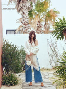 身体に程よくフィットするシルエットにすることで、カジュアルライクなサロペットを女性らしく。